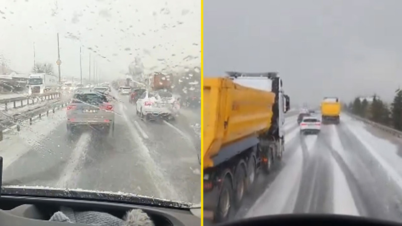 Polatlı’da etkili olan dolu yağışı bir sürücünün cep telefonu kamerasına yansırken, görüntülerde araçların güçlükle ilerlediği kaydedildi.