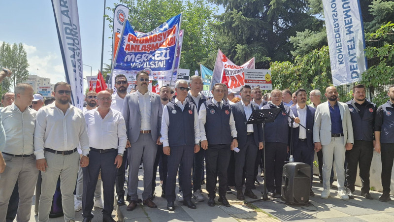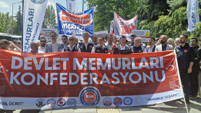 Devlet Memurları Konfederasyonu ve bağlı sendikaları, toplu sözleşme taleplerini yeniden kamuoyuna duyurmak amacıyla bugün Çalışma ve Sosyal Güvenlik Bakanlığı önünde bir araya geldi.