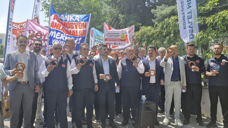 Basın açıklamasının ardından Devlet Memurları Konfederasyonu üyeleri, eskiden 20 TL’ye alınabilen çeyrek altının bugün bir simit fiyatına yükseldiğine dikkat çekti.