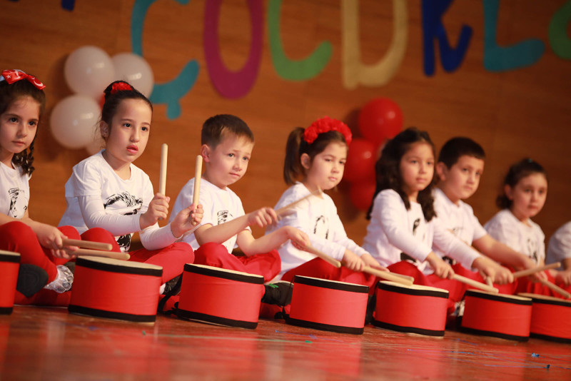 Neşet Ertaş Kültür Merkezi’nde düzenlenen program, Onuncu Yıl Marşı eşliğinde yapılan ritim gösterisiyle başladı. Karadeniz yöresi halk oyunları, zeybek, Kafkas dansları ve şarkılarla süren renkli gösteriler izleyenlerden büyük alkış aldı. Miniklerin sahnedeki neşesine aileler ve eğitmenler de eşlik etti.