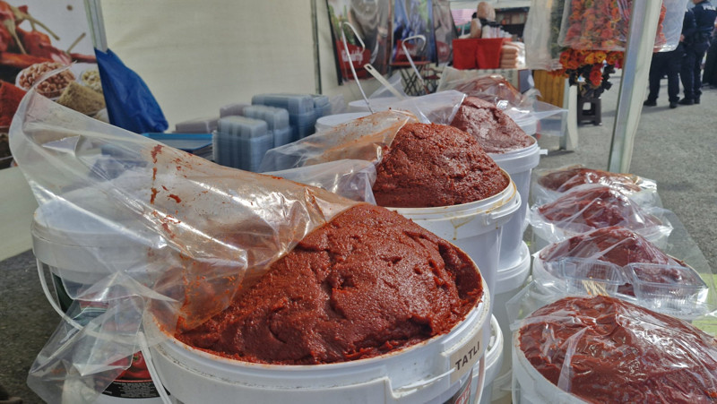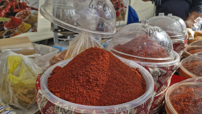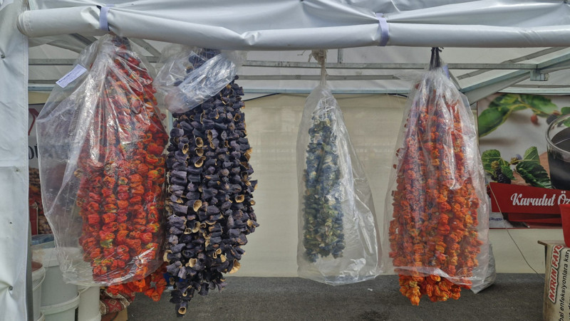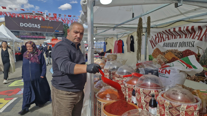 Mücahit Gökkaya, ürünlerin büyük bölümünün kendilerinin ürettiklerini belirterek, Kahramanmaraş'tan geldik. Buradaki ürünlerin birçoğunun üretimi bize ait. Erişte, biber, baharat, tarhana ve salçalarımızı kendimiz üretiyoruz. Toplamda 6 çeşit baharatımız ve 9 çeşit biberimiz var. Kırmızı biber, normal ev tipi biber, köy biberi gibi çeşitlerimiz mevcut. Ayrıca kebaplar için kullanılan çekme biberimiz de var. İhracata gönderdiğimiz ipek biber çeşitlerimiz bulunuyor.” dedi.