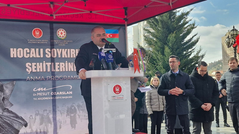 Anma töreninde konuşan Keçiören Belediye Başkanı Mesut Özarslan ise “Bugün burada, 33 yıl önce yaşanan acı olayları anarken, sizlerle bir arada olmanın onurunu ve gururunu yaşıyorum. Hüzünlü bir günün anısına, kıymetli büyükelçiler, milletvekilleri, dernek başkanları ve sivil toplum örgütlerinin değerli temsilcileri ile birlikteyiz. O gün, sadece bir tarih değil, insanlık adına utanç verici bir dönemin simgesi oldu. Azerbaycan’daki Hocalı kasabasında yaşananlar, Türk milletinin evlatlarına yönelik bir barbarlıktı. Katledilen masum insanlar, yalnızca Türk oldukları için değil, aynı zamanda İslam’ı ve insanlık değerlerini savundukları için öldürüldüler. Biz, bu acıyı hafızalarımızdan silmeyeceğiz ve her zaman onların hatırasını yaşatacağız.” şeklinde konuştu.