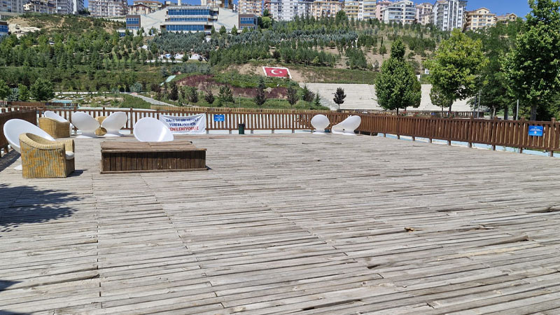 Vadinin içerisinde bulunan havuz çevresine konumlandırılan oturma alanlarının tahtadan yapılan zemininde ciddi bozulmalar göze çarpıyor. Zamanla yerinden sökülen ve yıpranan tahtalar, hem görüntü kirliliğine yol açıyor hem de vatandaşların güvenliğini tehdit ediyor.