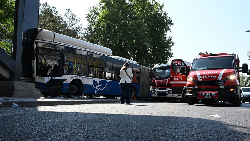 06 DU 8319 plakalı EGO otobüsü, henüz belirlenemeyen bir nedenle önünde seyreden 06 DL 0736 plakalı hafif ticari araca çarptı. Çarpmanın etkisiyle kontrolden çıkan hafif ticari araç, önünde bulunan iki otomobile daha çarparak durabildi. EGO otobüsü ise yoldan çıkarak üst geçidin beton bariyerine çarptı.