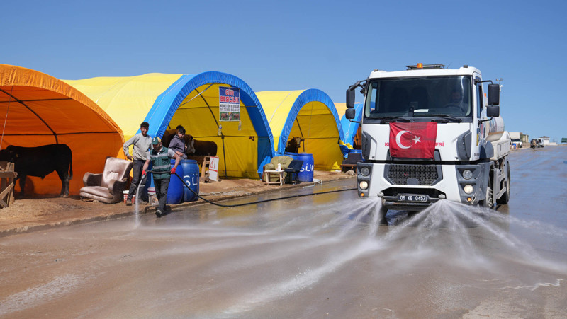 Keçiören Belediyesi temizlik ekipleri, kurban satış alanını süpürge araçları, tankerler ve tazyikli suyla her gün baştan sona yıkıyor. Çadırların çevresi ile vatandaşların yoğun olarak kullandığı yürüyüş yollarında aralıksız temizlik yapılırken, sinek ve haşere oluşumunu önlemek amacıyla düzenli ilaçlama çalışmaları da yürütülüyor. Zabıta ekipleri ile veteriner hekimler alanı sürekli denetleyerek hem hayvanların hem de alışveriş yapan vatandaşların sağlığını güvence altına alıyor.