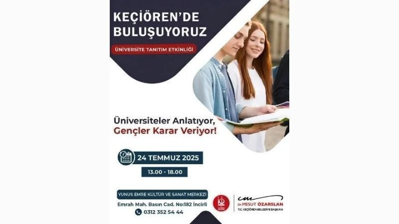 Üniversite tercih döneminde gençlere rehberlik edecek tanıtım etkinliği 24 Temmuz’da Keçiören’de düzenlenecek. Üniversiteler anlatacak, gençler karar verecek.