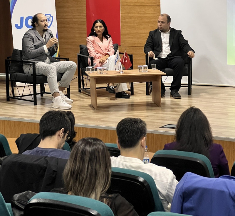 Üçüncü panel “Gençlerle Geleceği İnşa Etmek” başlığıyla gerçekleştirildi. JCI Ankara Başkanı Ertuğrul Aksoy’un moderatörlüğünü yaptığı oturumda, Inovest Kurucusu Dr. Ayşe Kuyrucu, Beartell Bilişim Genel Müdürü Buğra Çakır, SİYAMDER Ankara Başkanı Sümeyye Çağlayan ve Keçiören Belediye Başkan Yardımcısı Emir Can Tunç konuşmacı olarak yer aldı. Panelde etik değerler, gençlerin karar mekanizmalarına katılımı ve yapay zekânın toplumsal dönüşüme etkisi tartışıldı. Tunç’un zirveye yapay zekâ destekli video ile katılımı katılımcılardan büyük ilgi gördü.