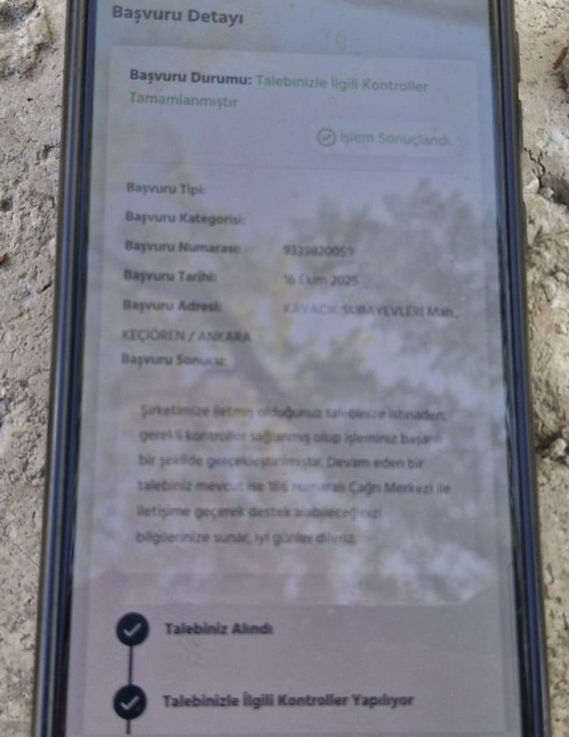Keçiören Kavacık Subayevleri Mahallesi’nde başlayan elektrik arızası müdahalesi, altyapı sorununu gün yüzüne çıkardı. Mahalle sakini İsmail Gölcük, sabah saatlerinde Başkent EDAŞ’tan “Sorununuz giderildi” mesajı aldığını belirterek, “Ne bir çalışan geldi ne de ortadaki sorun giderildi.” dedi.