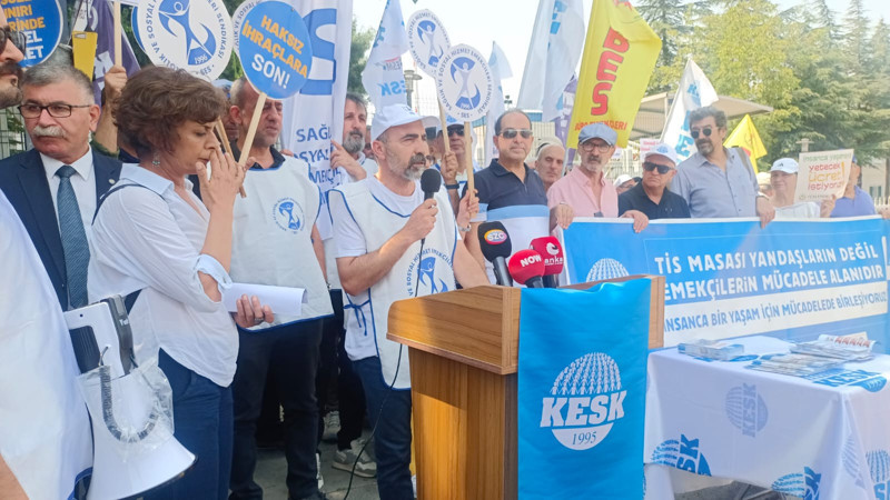 KESK, toplu sözleşme sürecine ilişkin taleplerini Çalışma Bakanlığı önünde yaptığı açıklamayla duyurdu. Hükümetin politikalarına ve yandaş sendikalara tepki gösteren emekçiler, "Sefaleti kabul etmiyoruz" diyerek mücadele kararlılığını vurguladı.