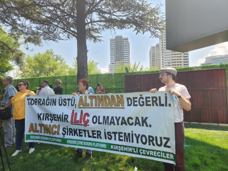 Kırşehir’in Kervansaray Dağları’nda yapılması planlanan altın madeni projesine karşı tepkiler artıyor. Kırşehirliler Vakfı Genel Başkanı Tuncay Tekay ve üyeleri, çevreciler, yurttaşlar Ankara’da Çevre, Şehircilik ve İklim Değişikliği Bakanlığı önünde bir araya gelerek projeye karşı çıktı.