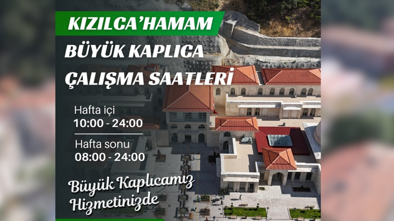 Kızılca’Hamam, hafta içi 10.00–00.00, hafta sonu ise 08.00–00.00 saatleri arasında hizmet veriyor. Detaylı bilgi almak isteyen vatandaşlar, 0 312 736 20 00 numaralı telefondan Kızılcahamam Belediyesine ulaşabilirler.