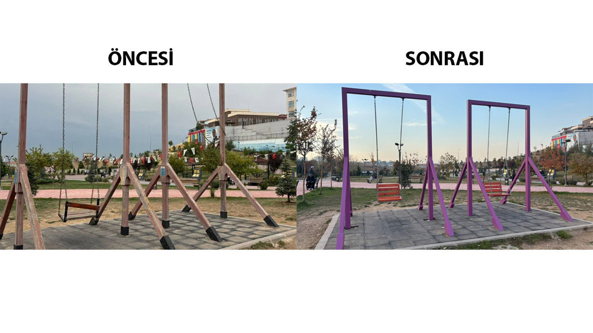 Hem çocukların hem yetişkinlerin vakit geçirdiği salıncak da belediye ekipleri tarafından elden geçirildi. Yeni ve boyalı salıncaklar yerlerine yerleştirildi. Böylece parka gelen aileler daha güvenli ve huzur içinde burada vakit geçirmeye başladı.