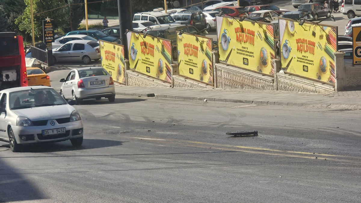 Mamak’ta trafiği tehlikeye atan olayda, yerinden çıkan rögar kapağı hareket halindeki belediye otobüsüne çarptı. Şans eseri yaralanan olmadı.
