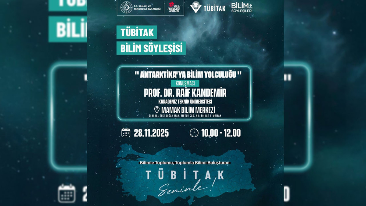 Mamak Belediyesi, bilim meraklılarını TÜBİTAK iş birliğiyle gerçekleştirilecek özel bir söyleşide bir araya getiriyor. “Antarktika’ya Bilim Yolculuğu” başlığıyla düzenlenecek etkinlikte, Karadeniz Teknik Üniversitesinden Prof. Dr. Raif Kandemir, dünyanın en zorlu coğrafyasında yürütülen bilimsel araştırmaları anlatacak.