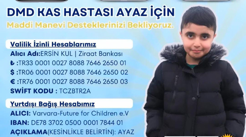 10 yaşındaki Ayaz Kul, kas erimesine yol açan DMD hastalığıyla yaşam mücadelesi veriyor. Yürüyemez hale gelen minik Ayaz için valilik onaylı kampanya devam ediyor. Ankara Büyükşehir Belediye Başkanı Mansur Yavaş da sosyal medya hesabından destek çağrısı yaptı.