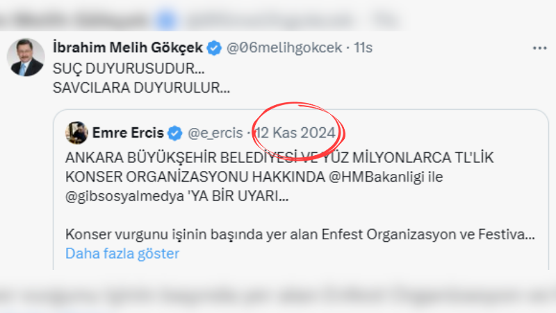 Gazeteci-Yazar Emre Ercis, 12 Kasım 2024 tarihinde sosyal medya hesabından dikkat çeken bir paylaşımda bulundu. “Ankara Büyükşehir Belediyesi ve yüz milyonlarca TL’lik konser organizasyonu hakkında” başlığıyla bir yazı yayımlayan Ercis, bu paylaşımında Hazine ve Maliye Bakanlığı ile Gelir İdaresi Başkanlığını da etiketleyerek söz konusu durumu bir “uyarı” olarak nitelendirdi. Belediyenin gerçekleştirdiği konser organizasyonlarının mali boyutuna dikkat çeken Ercis, kamu kaynaklarının kullanımı konusunda soru işaretleri doğurabilecek harcamaların denetlenmesi gerektiğine vurgu yaptı.