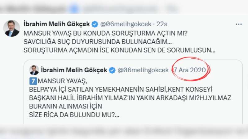 Melih Gökçek, 7 Aralık 2020 tarihinde sosyal medya hesabından yaptığı paylaşımda, Ankara Büyükşehir Belediye Başkanı Mansur Yavaş’a yönelik ciddi iddialarda bulundu. Gökçek, BELPA’ya ait olduğu belirtilen bir yemekhane satışını gündeme getirerek, söz konusu yerin Kent Konseyi Başkanı Halil İbrahim Yılmaz’ın yakın çevresiyle ilişkili olduğunu öne sürdü. Halil İbrahim Yılmaz’ın bu satış için Yavaş’a ricada bulunup bulunmadığını sorgulayan Gökçek, yemekhane içerisindeki malzeme değerinin yaklaşık 350 bin TL olduğunu ancak satışın 3,5 milyon TL gibi fahiş bir bedelle gerçekleştiğini iddia etti.