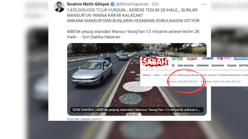 Melih Gökçek, 20 Şubat 2025 tarihinde Sabah gazetesinde yayımlanan “ABB’de peyzaj skandalı! Mansur Yavaş’tan 1.5 milyarlık adrese teslim 28 ihale” başlıklı haberi sosyal medya hesabından alıntılayarak sert ifadelerle yorumladı. Gökçek, paylaşımında “1.470.000.000 TL’lik vurgun… Adrese teslim 28 ihale… Bunlar Mansur’un yanına kâr mı kalacak?” diyerek, Ankara Büyükşehir Belediye Başkanı Mansur Yavaş’ı doğrudan hedef aldı. Kamuoyunun bu iddiaların peşini bırakmaması gerektiğini savunan Gökçek, “Ankara, Mansur’dan bunların hesabının sorulmasını istiyor.” sözleriyle, kamu kaynaklarının usulsüz şekilde kullanıldığını öne sürdü ve Yavaş’ı hesap vermeye çağırdı.