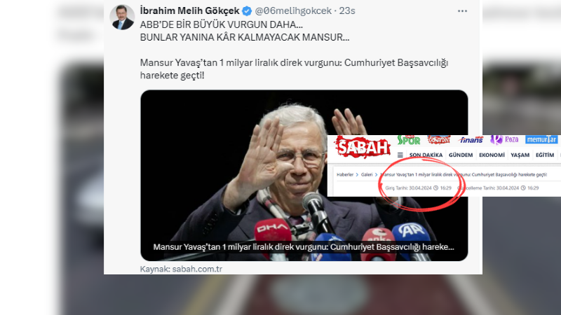 Melih Gökçek, 30 Nisan 2024 tarihinde Sabah gazetesinde yayımlanan “Mansur Yavaş’tan 1 milyar liralık direk vurgunu: Cumhuriyet Başsavcılığı harekete geçti!” başlıklı haberi sosyal medya hesabından alıntılayarak, Ankara Büyükşehir Belediyesi yönetimine yönelik eleştirilerini sürdürdü. Paylaşımında “ABB’de bir büyük vurgun daha… Bunlar yanına kâr kalmayacak Mansur…” ifadelerini kullanan Gökçek, söz konusu haberde yer alan yolsuzluk iddialarını gündeme taşıdı. Cumhuriyet Başsavcılığı’nın harekete geçtiğine dikkat çeken Gökçek, Yavaş’ın yönetiminde gerçekleştiğini iddia ettiği bu tür usulsüzlüklerin hesabının sorulması gerektiğini savundu.