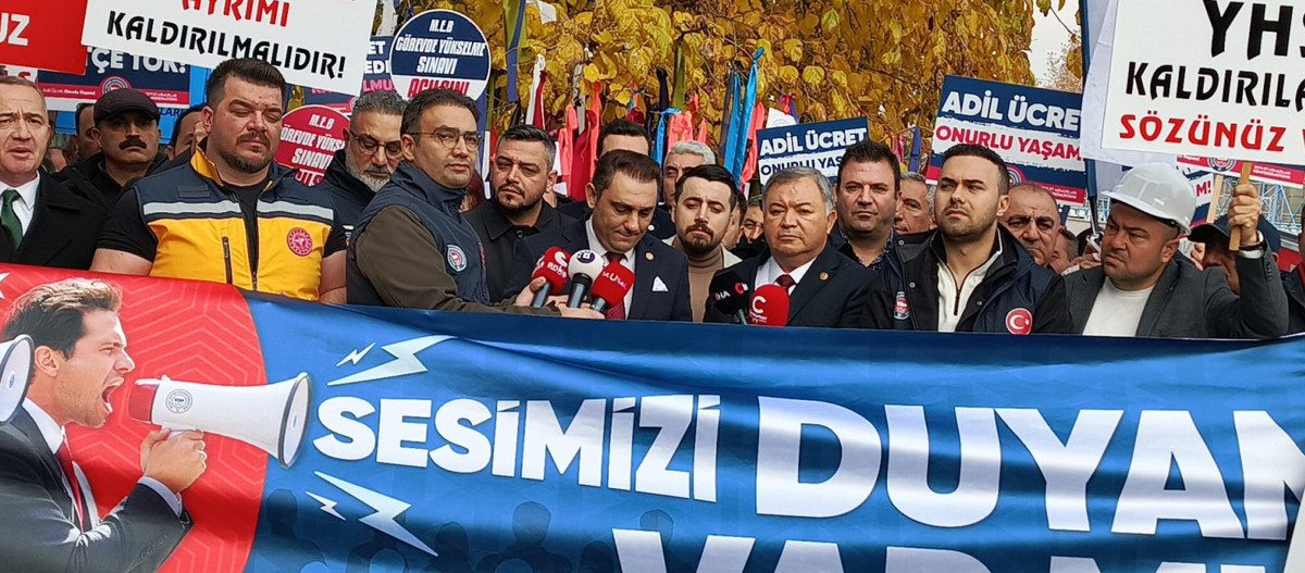 “Her geçen gün artan hayat pahalılığı karşısında, alın terimizin karşılığının eksilmesine, güven olmayan TÜİK rakamları ile maaşlarımızın törpülenmesine, evlatlarımızın beslenme çantasına koyacak bir lokma ekmeği bile düşünerek yaşamak zorunda bırakılan milyonların sessiz çığlığına, kimsenin sesi çıkmazken, herkes sus pus olmuşken, sorumlu olan yetkili parti sendikaları ‘görmedim, duymadım, bilmiyorum!’ oyununu oynarken… bizler buradayız ve haykırıyoruz: Sesimizi duyan var mı? 3 ay önce memurların ve emeklilerin mali, sosyal, ekonomik ve özlük haklarının belirlenmesi için toplu sözleşme masası kurulmuştur. Memur ve emekli zam oranlarını meclis belirlesin, Hakem heyetine gitmeyin, temsilci göndermeyin, itirazlarına rağmen, kendilerinin bizzat “noter!” diye suçladıkları hakem heyetine bile isteye temsilci göndererek, memur ve emeklilerimize 2026 yılı için toplam yüzde 18 ve 2027 yılı için ise toplam yüzde 9 sadaka zammı verilmesinin iştirakçisi ve suç ortağı olan bu parti sendikalarına üye olup bunlara yetki veren memurlara sesleniyoruz.”