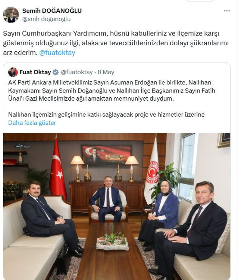 Doğanoğlu’nun 966 takipçisi ve 749 takip ettiği hesap bulunuyor. Hesabının biyografi bölümünde 'Nallıhan Kaymakamı' ifadelerine yer veren Doğanoğlu, profilini herkese açık kullanıyor.