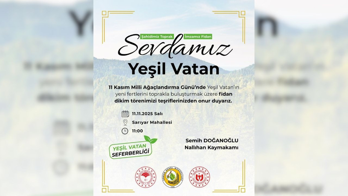 Nallıhan Kaymakamlığı, her yıl 11 Kasım’da kutlanan Milli Ağaçlandırma Günü kapsamında ilçe genelinde geniş katılımlı bir fidan dikim etkinliği gerçekleştirecek. Kaymakam Semih Doğanoğlu, tüm ilçe halkını ve kurum temsilcilerini etkinliğe davet ederek, çevre bilinci ve vatan sevgisini bir araya getiren mesajlar verdi.