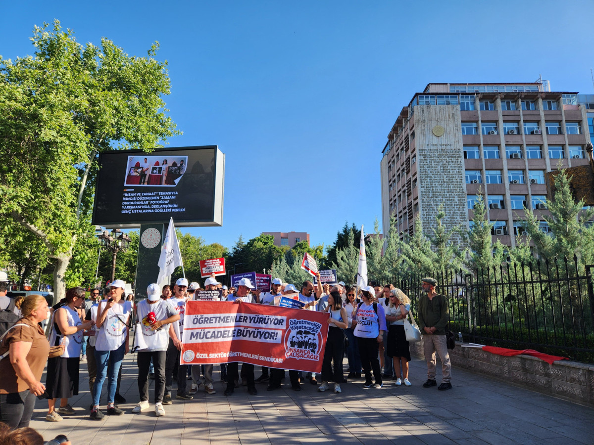 Özel Sektör Öğretmenleri Sendikası (Öğretmen Sendika) üyeleri, özlük haklarını savunmak için Milli Eğitim Bakanlığı (MEB) önünde toplandı. Dört ana talebi dile getiren öğretmenler, kamuda çalışan meslektaşları ile eşit haklara sahip olmak için mücadele etmeye devam edeceklerini bildirdi.