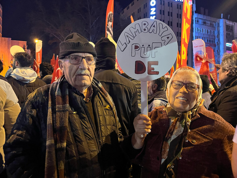 Güvenpark’ta bir araya gelen gruplar, sık sık “Hukuksuzluğa hayır” sloganları attı. Eylemde yer alan bir vatandaş, elindeki “Sandıkta geldiniz, sandıkta gideceksiniz” pankartını göstererek, “Demokrasiye inanıyorsak, halkın iradesine saygı duymalıyız. İmamoğlu’na yapılan, seçmenin iradesine yapılmıştır” ifadelerini kullandı. Bazı pankartlarda ise öğrenciler kara mizahı konuşturdu.