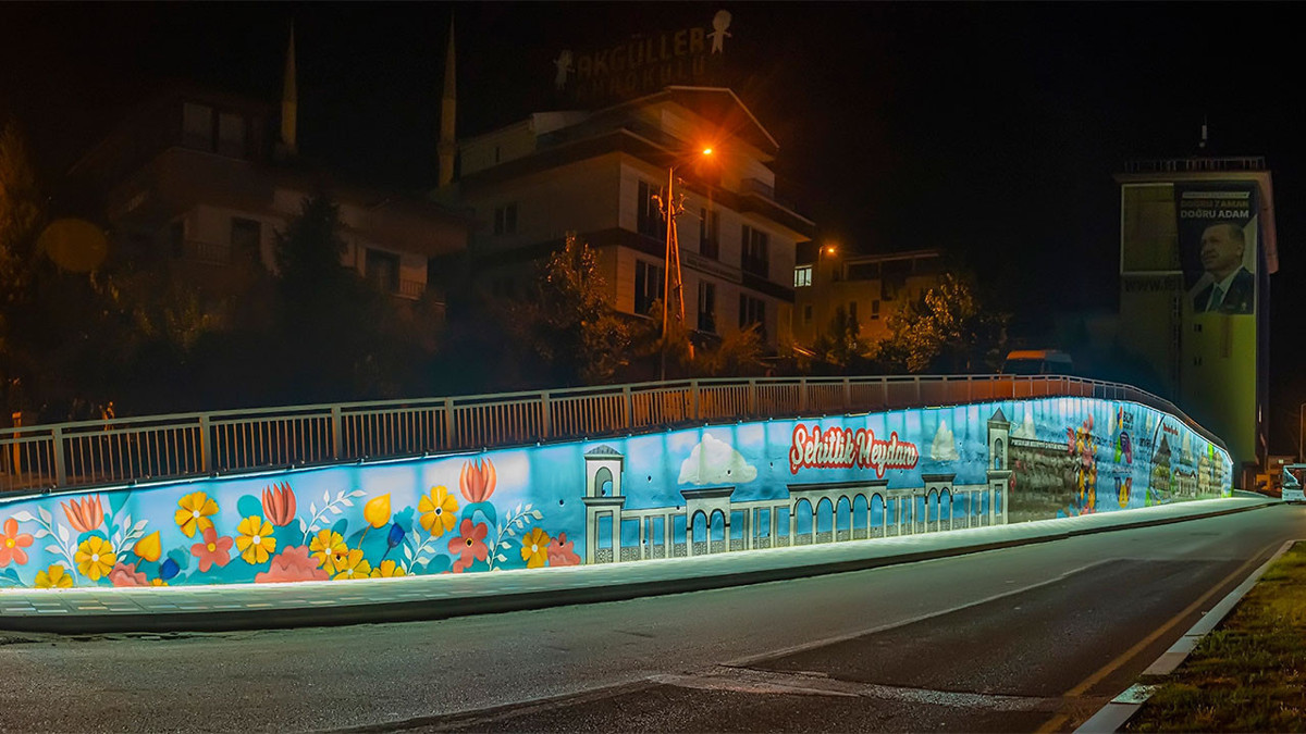 Belediye tarafından ilçeye kazandırılan hizmet alanlarında, profesyonel ressamların gerçekleştirdiği sanatsal fotoğraf uygulamaları ve dikey düzlemde topraksız olarak canlılığını sürdüren dikey bahçelerle duvarlara görsel bir zenginlik katıldı.