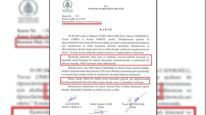 Belediye yönetimi ise öneriye temkinli yaklaştı. Yetkililer, ilçedeki şebeke suyunun fiziksel, kimyasal ve biyolojik açıdan herhangi bir risk taşımadığını ifade etti. Açıklamada, “Şebeke suyunun kullanımı ve içilmesinde sakınca bulunmamaktadır. Belediyemiz, İlçe Milli Eğitim Müdürlüğü ile sürekli iletişim halindedir. Bu nedenle, söz konusu talebin resmi kurumdan gelecek yazı doğrultusunda değerlendirilmesi daha uygun olacaktır” denildi.