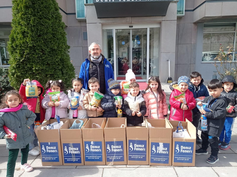 Nezaket Okulu'nun minik öğrencileri, yardımseverlik ruhuyla hazırladıkları erzak paketlerini, ihtiyacı olan ailelere ve çocuklara ulaştırılması için Deniz Feneri Derneği'ne teslim etti.