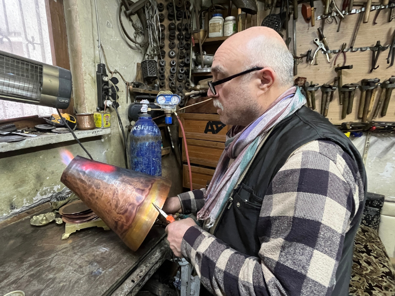 Ankara’da 45 yıldır bakır işçiliği yapan 64 yaşındaki Şener Kartal, mesleğin geçmişten bugüne nasıl değiştiğini ve zorluklarını anlattı. Çıraklıktan ustalığa uzanan hikâyesinde büyük fedakârlıklarla mesleğini ayakta tutmaya çalışan Kartal, "Eskiden 15-20 çalışanım vardı, şimdi ne çırak var ne de eski talep ama meslek sevgisiyle ayakta duruyorum." dedi.