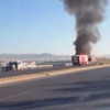 Sincan’da bariyere çarpan TIR alevler içinde yandı