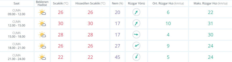 Haftanın ilerleyen günlerinde ise sıcaklıkların daha da artarak yaz mevsimine uygun değerlere ulaşması bekleniyor. Özellikle öğle saatlerinde dışarı çıkılmamasını, eğer çıkılacaksa da güneşten korunmak için güneş kremi, güneş gözlüğü ve şapka gibi önlemler alınması uzmanlar tarafından tavsiye ediyor.