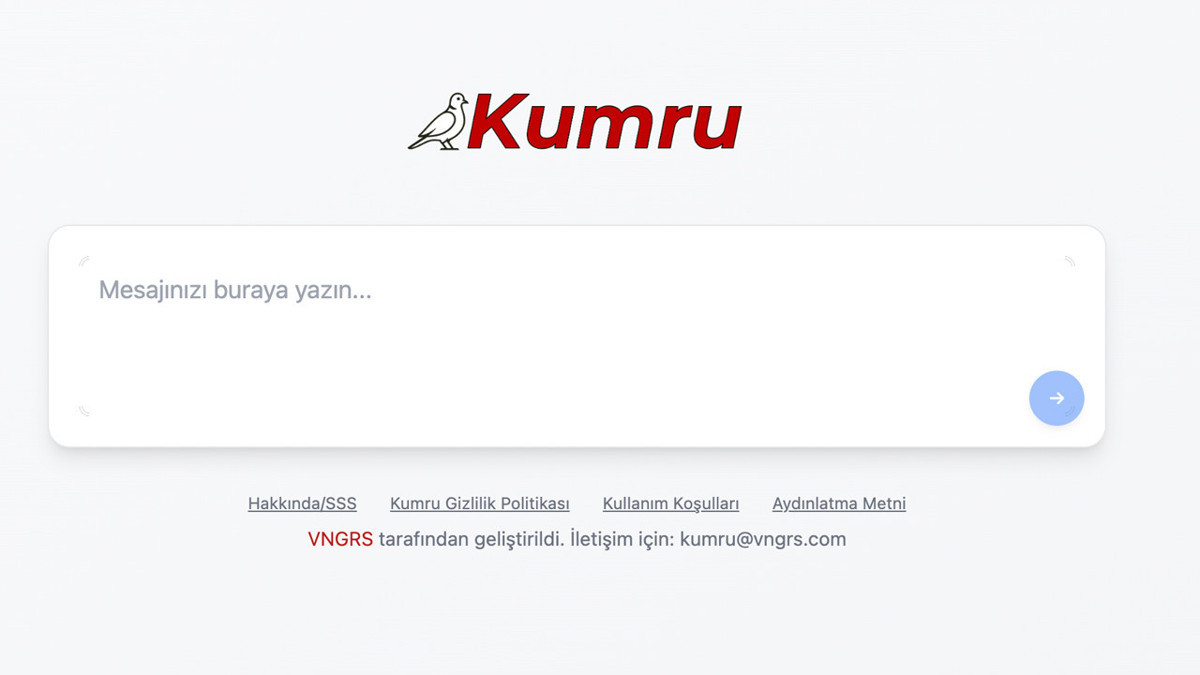 Türkiye'nin ilk yerli ve milli yapay zekâsı Kumru ücretsiz olarak kullanımda. Kumru AI'ye erişebilmek için arama motorlarından kumru.ai adresine girmeniz yeterli.
