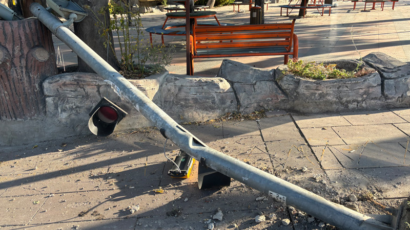 Tıp Fakültesi Caddesinin araç ve yaya trafiğinin en işlek olduğu bölgede devrilen trafik lambası direği, oradan geçenler için tehdit oluşturdu.