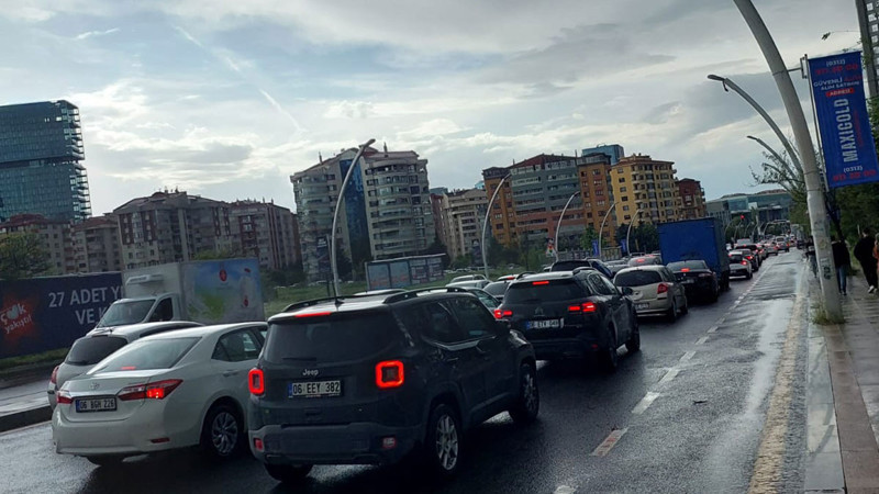 Söğütözü'nde iş çıkışı her gün Başkentlileri bıktıran trafik yağmurun da etkisiyle haftanın son iş gününde daha korkunç bir hale geldi.
