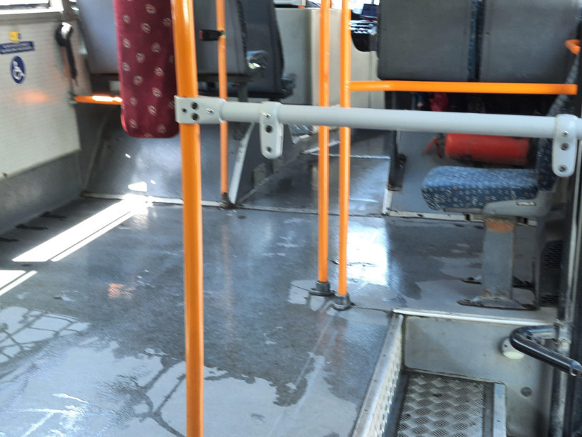 Başkent'te hizmet veren bir EGO otobüsünde çekilen bu fotoğraf, araç zeminindeki ıslaklık ve kayganlık durumunu gösterdi.