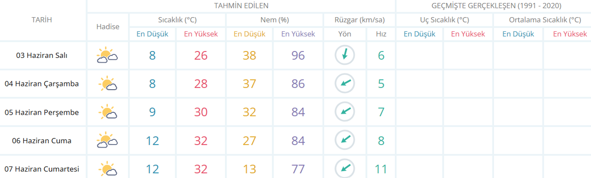 Ankara Yenimahalle 3-4 Haziran hava durumu