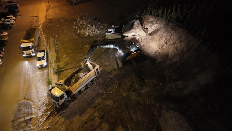 Ankara'nın Yenimahalle ilçesinde akşam saatlerinde etkili olan sağanağın ardından zemin kayması yaşanan Batıkent'teki alanda istinat duvarı yıkıldı.