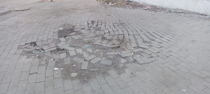 Bunun yanı sıra, etrafta biriken çöpler ve düzensiz görüntüler de vatandaşlar için hoş olmayan bir manzara oluşturuyor. Özellikle çevredeki kaldırımların bozuk olması, hem yayalar hem de engelli bireyler için ciddi bir tehlike arz ediyor. Kaldırımda büyük boşluklar ve taşların eksikliği, yürüyüş yapanları zor durumda bırakırken, aynı zamanda dağınık bir görüntünü oluşmasına da neden oluyor.
