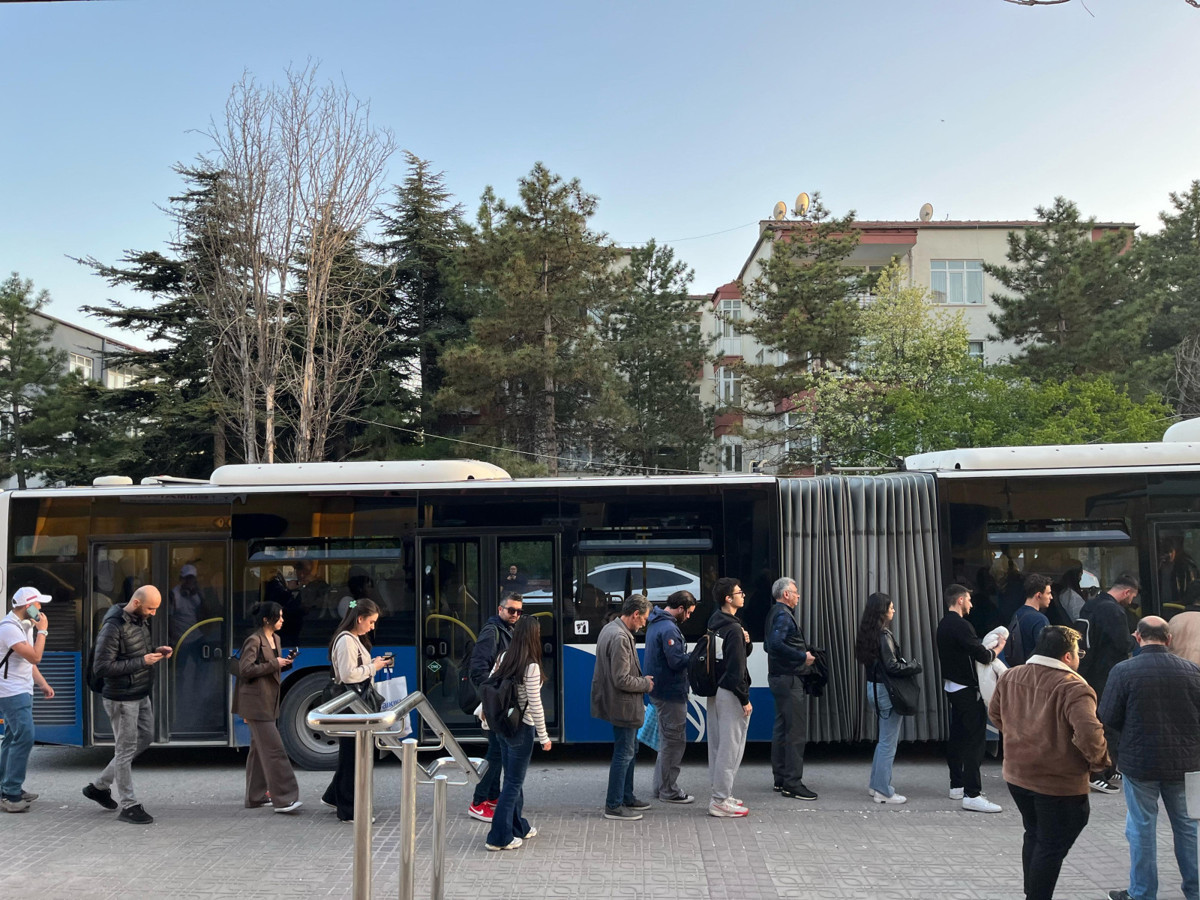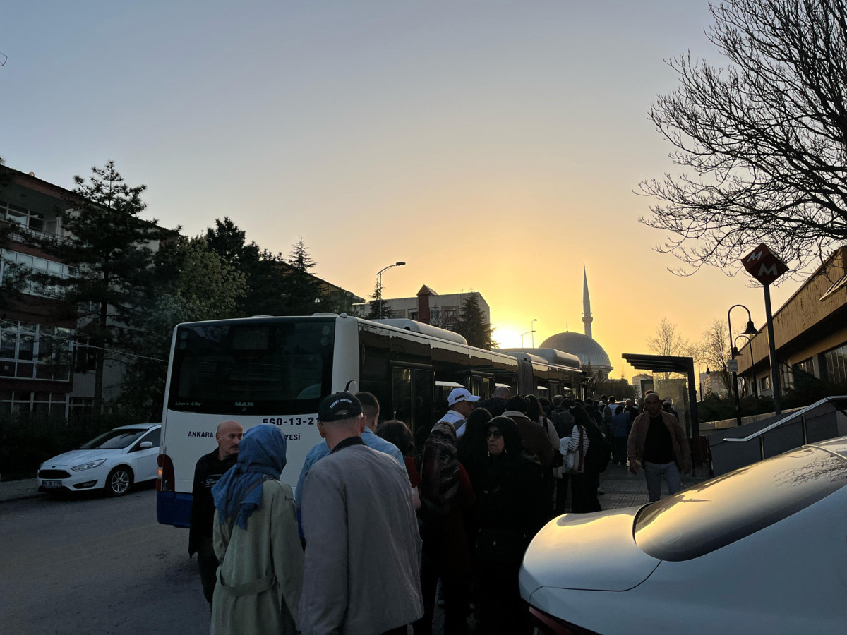 Yenimahalle Metro Durağı önündeki otobüs kuyruğu her gün metrelerce uzuyor. Vatandaşlar, artan yoğunluk karşısında ek sefer talep ediyor.