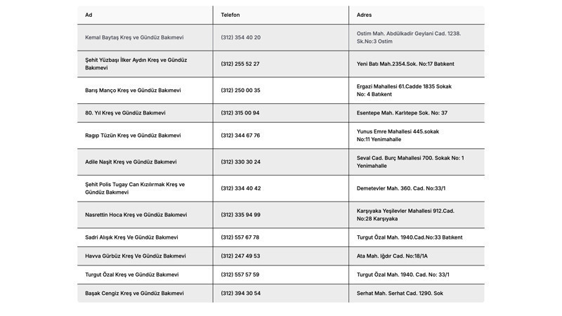 Yenimahalle'deki kreş ve bakımevlerine başvurabilmek için iletişim adresleri şöyle: