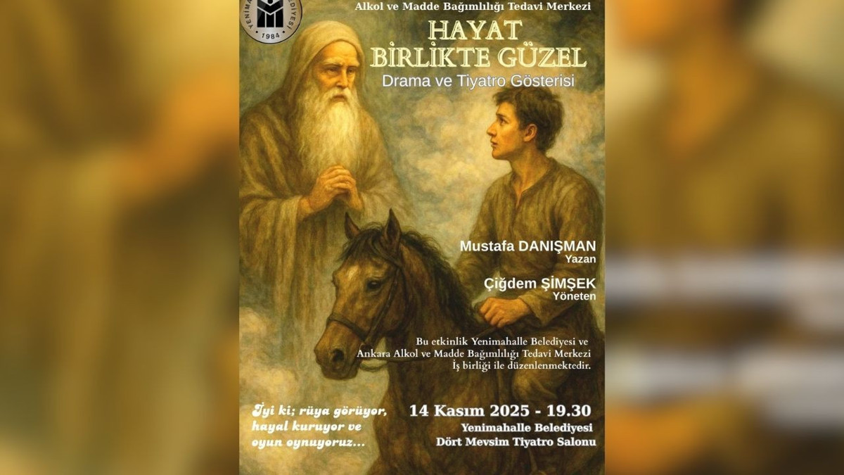 Yenimahalle Belediyesi ve AMATEM iş birliğiyle düzenlenen “Hayat Birlikte Güzel” tiyatro gösterisi, tedavi gören hastaların sahnesinde bağımlılıkla mücadeleyi sanatın iyileştirici gücüyle anlatacak.
