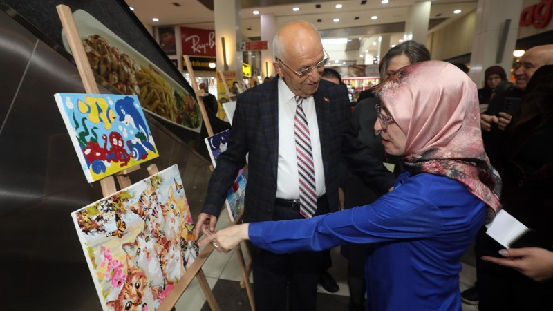 Down Sendromlu, otistik ve hafif mental gençlerin ve ailelerinin dahil olduğu YENİMEK Özgürleşen Eller Sanat Atölyesi, Batıkent Meydan AVM'de bir sergi açtı. Heyecanları gözlerinden okunan özel sanatçılar, resim ve el sanatları çalışmalarını vatandaşların beğenisine sundu.