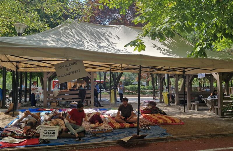 AK Parti tarafından meclise sunulan ve zeytinlik alanların madencilik faaliyetlerine açılmasına olanak tanıyan kanun teklifine karşı başkent Ankara’da nöbete başlayan köylüler, teklife tepki olarak açlık grevine başladı. Cemal Süreya Parkı’nda bir araya gelen direnişçiler, topraklarını ve yaşam alanlarını korumak için kararlı bir mücadele sergiliyor.