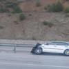 Orta refüje girip bariyerlere çarparak durabilen aracın yol açtığı kaza, Afyonkarahisar’da meydana geldi.