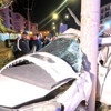 Kontrolden çıkan araç kaldırıma çıkarak beton elektrik direğine yan kısmıyla çarptı. Çarpmanın şiddetiyle otomobil direğe saplanırken, sürücü Oktay K. ve yolcu Tuğçe F. (22) araç içinde sıkıştı.