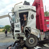 Bolu'da TEM Otoyolu'nda TIR ile kamyonun çarpışması sonucu meydana gelen kazada, kamyon sürücü kabinde sıkışarak yaralandı.