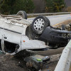Devrilerek durabilen otomobilde kaza sonrası yangın çıktı. Çevredeki sürücüler, araçta bulunan yangın tüpleriyle alevlere hızla müdahale ederek yangının büyümesini engelledi.